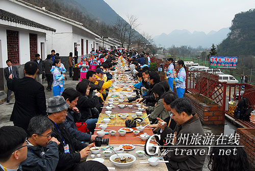 贵州山水吸引韩国客人省旅游局副局长傅迎春陪同考察布依族长桌席