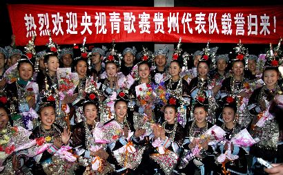 晚上10时,随着北京到贵阳的火车徐徐进站,合唱队的侗族姑娘小伙一下火车,立刻被鲜花与掌声所包围,让他们感动不已:“感谢家乡父老对我们的心意,我们的成绩离不开大家的支持。”