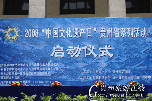2008年6月14日,2008“中国文化遗产日”贵州省系列活动在贵阳拉开帷幕。来自贵州省各地的国家级、省级非物质文化遗产项目代表性传承人汇聚贵阳向市民展示了:侗族琵琶歌、布依八音坐唱、苗族蜡染、水族马尾绣、苗族刺绣、苗族银饰、玉屏萧笛、排卡芦笙、石阡木偶戏、屯堡地戏等。充分印证了贵州“文化千岛”的美誉和贵州多元文化“共生共荣”的现象。开幕式期间人头攒动,市民纷纷慕名前来观看。