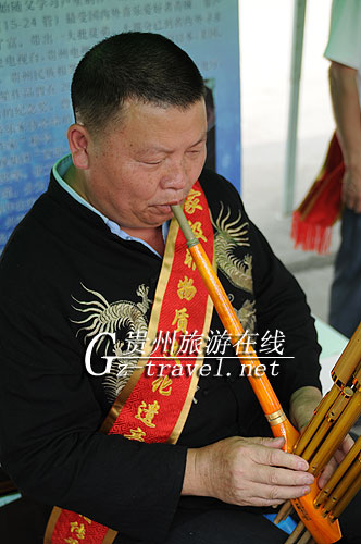 来自雷山的芦笙制作艺人莫厌学向市民演奏芦笙。