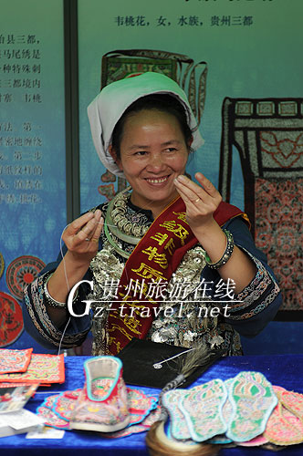 来自三都水族妇女韦桃花在现场为市民演示马尾绣工艺。