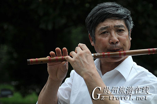 来自玉屏县刘泽松向市民演奏玉屏萧笛。