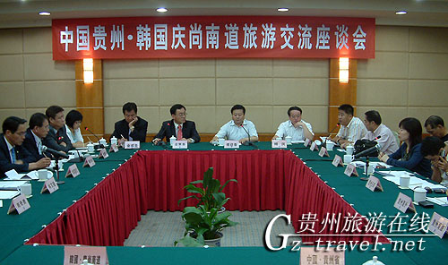 在今天召开的贵州省与韩国庆尚南道旅游交流座谈会上,贵州省旅游局副局长傅迎春与韩国庆尚南道文化观光体育局观光振兴课课长金东泰就贵州旅游的一系列概况展开了交流,并播放了《多彩贵州》旅游形象宣传篇。傅迎春副局长表示贵州有丰富的旅游资源,非常欢迎韩国各行业人士来贵州旅游、学习、考察、会议、观光,并欢迎的韩国旅游企业、媒体到贵州做交流,用这种方式相互交流、宣传。金东泰课长表示将大力宣传贵州,和贵州这样的的交流能更多一些,也热情邀请贵州的旅游企业和媒体到韩国做宣传,让韩国百姓更了解贵州。