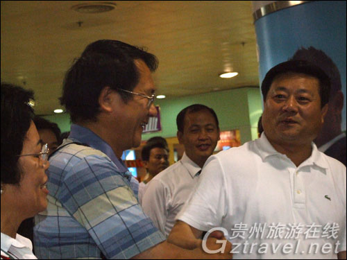 晚8点,贵州省旅游局傅迎春副局长、李三旗副局长、纪检组长李光等相关领导在机场亲切接见了台湾游客一行,对台湾游客来黔旅游表示热烈欢迎,并希望他们回到台湾以后能向更多的台湾同胞推荐贵州,让更多的台湾同胞来黔旅游。