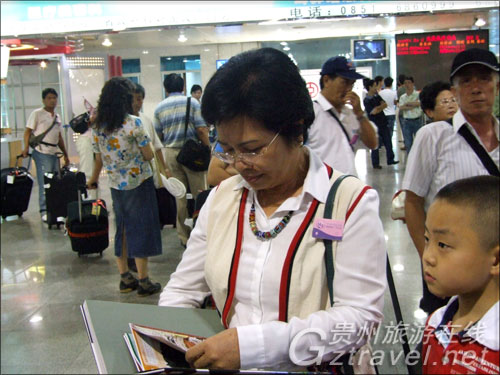 贵州省旅游局傅迎春副局长向台湾游客赠送贵州画册