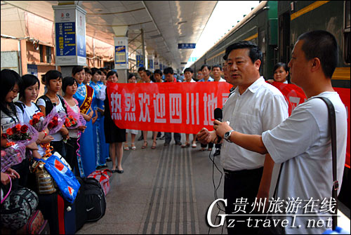 贵州省旅游局副局长傅迎春到车站迎接并接受采访。