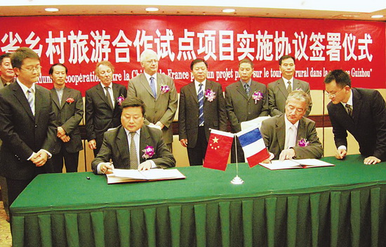 中法贵州省乡村旅游合作试点项目协议日前在贵阳正式签订,双方约定将运用中法两国的成功经验发展贵州乡村旅游,为国内外市场提供文化产品和相应的乡村旅游产品,并以保护自然人文遗产、发展区域经济和改善地方群众生活为目的。