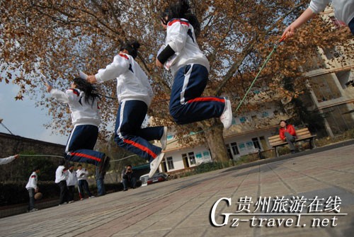 12月19日,几名女学生在课外开心地跳绳。