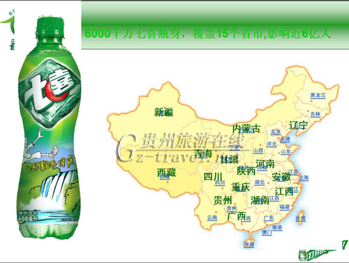 印在七喜瓶身的贵州十大标志性景观正推向全国十五个省级销售区