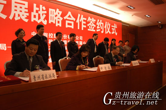据了解,按照国家旅游局提出的“大力发展国内旅游”和全省旅游工作会议精神,进一步借用外力推动我省旅游跨越式发展,我省将加大与大型企业、行业协会和金融机构的紧密合作,充分发挥大型企业和相关行业优势,遵循市场导向,实现又是互补,共同打造“多彩贵州”旅游品牌,整体推进我省旅游行业又好又快的发展,省旅游局与中青旅、上海青旅、广之旅、中国休闲产业联盟签订旅游发展合作协议,并与农行贵州省分行签订旅游开发合作协议。