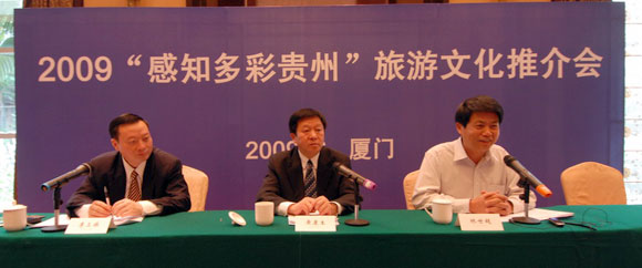 在厦门举办的2009“感知多彩贵州”旅游文化推介会,主要介绍我省丰富的旅游文化资源和避暑胜地的“多彩贵州”旅游目的地形象,重点推介遵义红色旅游文化以及我省今年举办的大型旅游节庆活动和第四届旅发大会情况,加强两地旅游业界和新闻媒体的交流与合作,进一步提升贵州旅游文化的知名度和影响力。参会单位有省委宣传部、省教育厅、省农业厅、省文化厅、省新闻出版局、省旅游局、团省委、遵义、贵阳、安顺、黔南、毕节、铜仁地区政府(行署)和旅游局,省政府驻厦门办事处、贵州日报报业集团、贵州人民广播电台、贵州电视台、当代贵州和相关旅游企业。厦门方参加本次活动的有厦门市旅游局负责人和主要旅行社代表及厦门市主要新闻媒体记者约150人。黄康生副省长在推介会上即席回答记者提问;遵义歌舞团和杂技团在推介会上表演了精彩的贵州原生态民族歌舞和杂技——肩上芭蕾。推介会上,贵州省国际旅行社、山水旅行社还分别与厦门几家旅行社签订了客源互动协议。