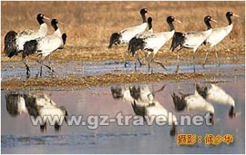 这里是鸟儿的天堂,它们或成群结队,或零零散散,静静的排列着,还有世界上孑遗的高原鹤类--黑颈鹤,也在这里栖息。它们可以和人类的零距离接触,这样的画面能不让人感动吗?