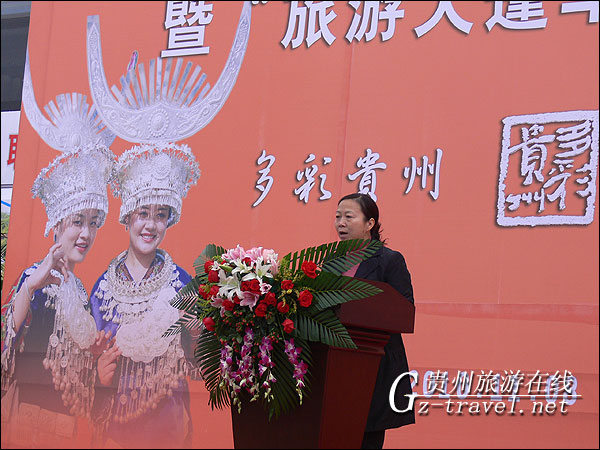 本网讯 11月8日,2010贵州旅游冬季联合大促销启动暨旅游大篷车出发仪式,在贵州国际会展中心广场举行。主题为“多彩贵州、醉美之旅”的旅游推荐会,在省旅游局局长傅迎春的指挥下出发。