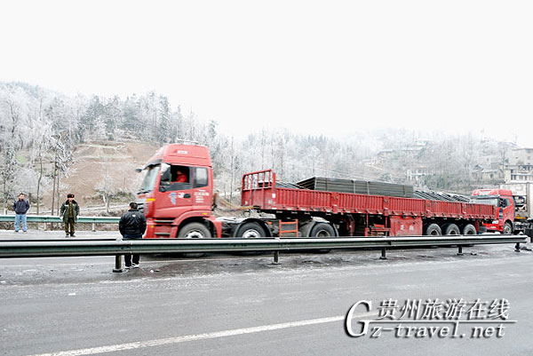 在元旦节期间,整个贵州都受到低温天气的袭击,省内贵遵、贵新等六条高速路全线封闭,交通受阻,我省多家气象台发布道路结冰预警,在高速公路上上演了一幕幕相互帮助、积极救援的感人画面。