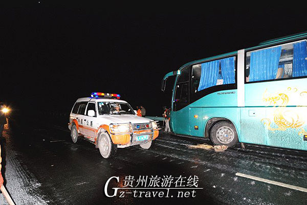 一直忙碌的路政救援车查看各段险情