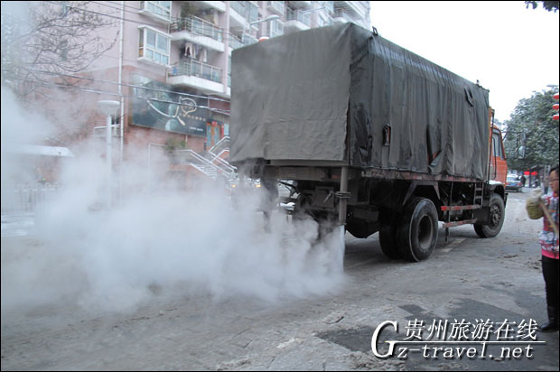 一辆除雪车在贵阳街头除雪