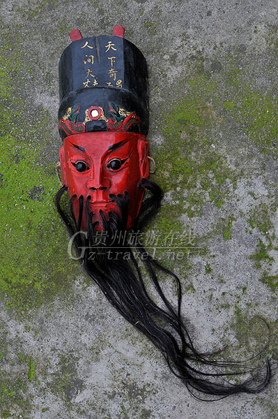 安顺地戏表演中使用的面具,是地戏的灵魂。用白杨木或丁香木精雕细刻而成,再涂以脸谱彩绘,造型生动形象,神采飞扬,有的神态诡秘,颇具民间艺术色彩和粗犷格调。