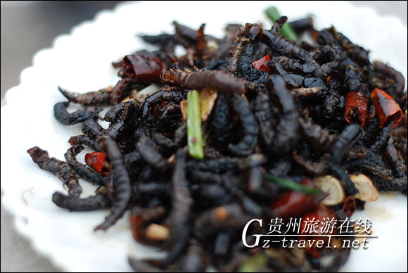 望谟虾巴虫.虾巴虫是一种生活在水中石块下的爬行动物,身体扁长、有节,两侧对称有脚,头部有钳,乍看令人可怕。食用时先用烫水烫死,取出肠污洗净,用油炸炒,又香又脆,还可以烧烤。虾巴虫蛋白质含量高,营养特别丰富,堪称望谟特有名食。