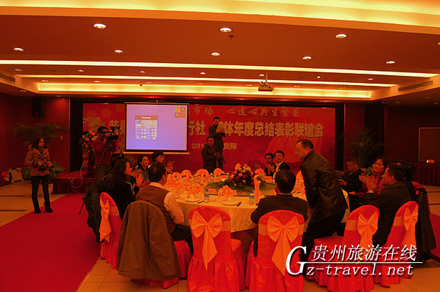 本网讯 2012年1月6日,由黄果树旅游集团股份有限公司主办以“手牵手同创市场、心连心共生繁荣”为主题的黄果树与贵州省内旅行社、媒体年度总结表彰大会在林城万宜酒店隆重举行,贵州省旅游局局长傅迎春、贵州省旅游局副局长杨俊、贵阳市旅游行业协会副会长、旅行社分会会长吴比、贵州省内多家知名旅行社以及贵州日报、贵州商报、贵州旅游在线、贵网等20多家媒体出席了本次会议。