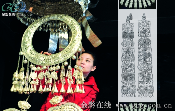 综合贵州苗族最有特点的服饰,采用最具代表性的元素,由贵州省博物馆副馆长陈维他创意设计、“非遗”传承人杨光宾精心打造,高达3.5米、总重近20公斤的超高苗族银饰近日亮相。该银饰采用白银与白铜混合制作工艺,历时4个月,全手工打造,旨在探索民族手工艺品设计和制作的联合。