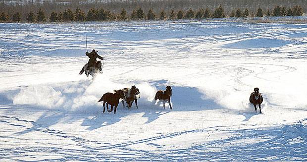 来到内蒙乌兰布统红山军马场,这里养的军马主要是提供给北疆的边关部队战士巡逻用的马,任何现代交通工具都无法替代它们。为了给部队战士提供优质的马匹、牧马工的明白自己身上的责任,在零下30多度也坚持遛马,他们说“……这样遛出来的马才是优质马,才能符合实战需要,圈养的马是上不了战场的……”。