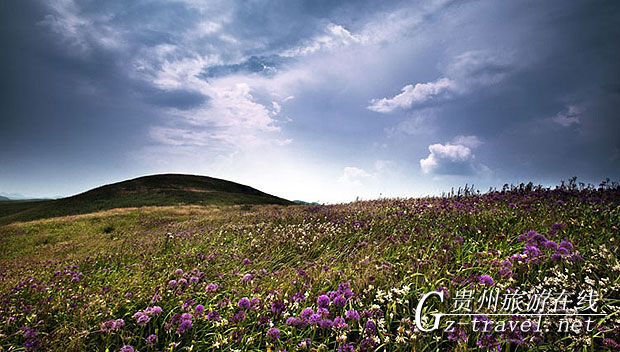 韭菜坪,主峰海拔2906米,是贵州省最高峰,堪称贵州屋脊。它的四周乌蒙山连绵起伏,气势磅礴。位于六盘水市钟山区与毕节地区赫章县交界处。9月在这里漫山遍野的韭菜花海,芬芳扑面,众多摄影爱好者、驴友们赶着花开时间纷纷前来摄影观赏。 夏末秋初,正是韭菜花开的好时节,四处开满紫白相间的韭菜花,争奇斗艳,让人应接不暇,这是摄影爱好者的最佳摄影时期,爱好徒步的朋友也可以前来感受贵州之颠的魅力,站在贵州屋脊上呼吸清新的空气,是长久以来住在水泥森林里的都市人最梦寐以求的体验方式。