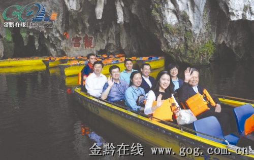 杨振宁是23日晚到达贵阳的,也是第一次来到贵州。大家给他介绍贵州的许多自然景点,想请他去看看别具一格的贵州美景。杨振宁听了介绍后说:去龙宫。