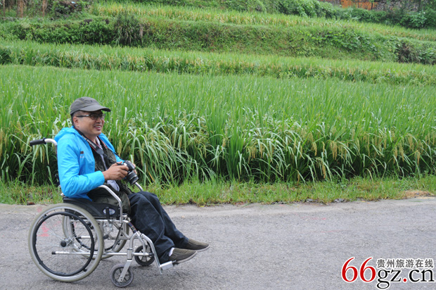 只能坐在轮椅上拍摄的张苏荣,在大家的协助下,和采风团队从贵阳辗转到雷山再到从江,别人用脚丈量路途,他却用自己的双手丈量自己的旅途,不仅如此,他还用他的双手记录下了沿途的风景,也记录了自己对摄影的喜爱。“今天是我母亲的生日,我想发几张照片给她作为她的生日礼物”张苏荣告诉大家,残疾人摄影协会的成员听后,纷纷用手机给他拍了照片并发送给他母亲作为她的生日礼物。