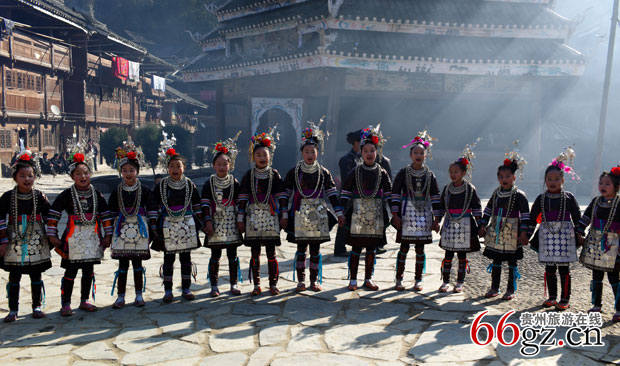银潭侗寨的进寨仪式,侗家孩子表演侗族大歌
