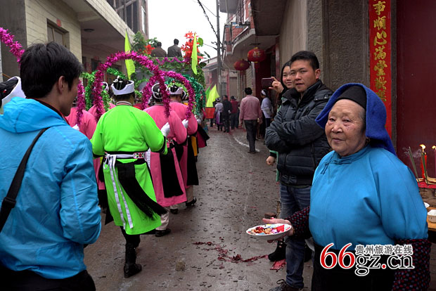 屯堡村民送糖果给摄影采风团员