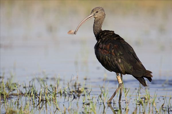 彩鹮性喜群居且喜温,多栖息于浅水湖泊、沼泽、河流、水塘、湿草地等水域,主要以水生昆虫、昆虫幼虫、虾、甲壳类、软体动物等小型无脊推动物为食;成年彩鹮羽毛以栗紫色为主,体长约60厘米,体形类似于朱鹮,但比朱鹮小。