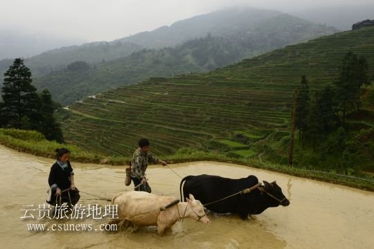 入夏以来,地处贵州省榕江、从江两县的月亮山梯田进入耕种繁忙期,在如诗如画的月亮山梯田里到处是人们忙碌的身影。新华社发(王炳真 摄)