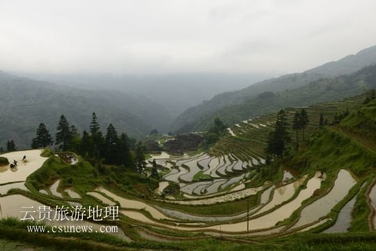 入夏以来,地处贵州省榕江、从江两县的月亮山梯田进入耕种繁忙期,在如诗如画的月亮山梯田里到处是人们忙碌的身影。新华社发(王炳真 摄)