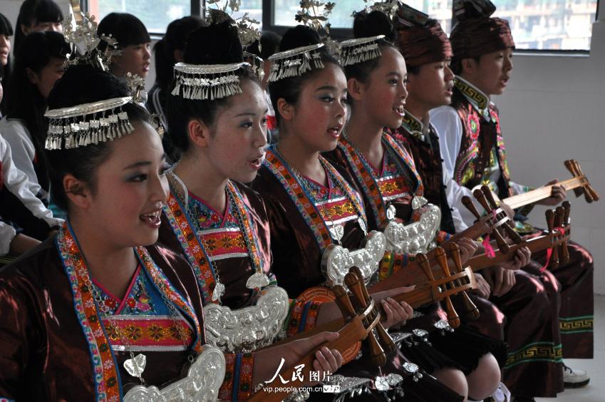 近年来,贵州省黔东南州黎平县大力推进“民族文化进校园”工程,在全县多所学校分别建立民族文化人才培训示范基地,将侗族大歌、侗族琵琶歌、侗族摔跤等民族文化纳入课堂教学中。目前,黎平县已有281所中小学将民族文化列入教学必修课,占全县学校总数的90%以上,此举为保护和传承当地优秀侗族文化作用巨大。(杨代富/人民图片)