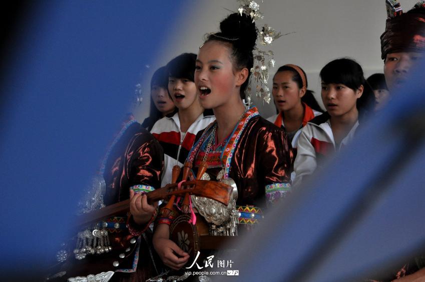 近年来,贵州省黔东南州黎平县大力推进“民族文化进校园”工程,在全县多所学校分别建立民族文化人才培训示范基地,将侗族大歌、侗族琵琶歌、侗族摔跤等民族文化纳入课堂教学中。目前,黎平县已有281所中小学将民族文化列入教学必修课,占全县学校总数的90%以上,此举为保护和传承当地优秀侗族文化作用巨大。(杨代富/人民图片)