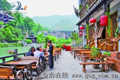 这是一条青石铺就的街面,是镇远古城最为老旧的街道之一。据介绍,镇远古城旧时分府城和卫城,河这边为府城,是官家和有钱人居住的地方,与河对面平民居住的卫城正好遥相呼应。