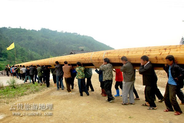 扛龙船的队伍如蚂蚁搬家般壮观。