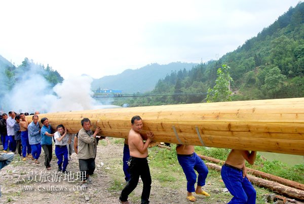 龙船在鞭炮声中草河道前进。