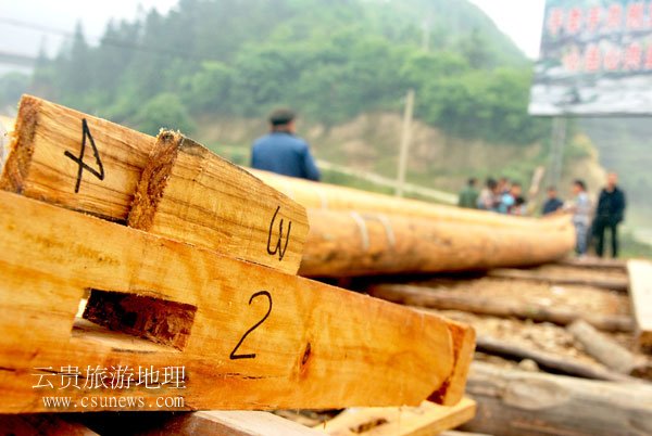 龙船下水前,一堆连接母船和子船的木架放在龙船旁。