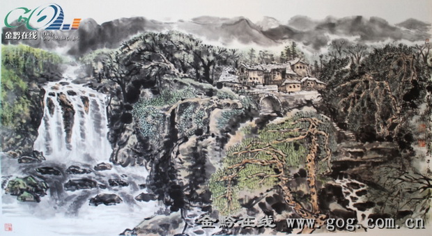 据了解,此次被收藏的画作作品为:《黔山秀水图》(69X138cm,2014年5月创作),作品现挂于钓鱼台总统楼团长客厅。