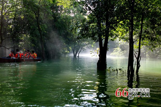 “小伙伴”们为这难得一见的美景欢呼雀跃。 “小伙伴”们在鸳鸯湖里游了一圈,仍意犹未尽,再次把船划到湖的深处,尽情吮吸着这饱含负氧离子的空气,尽情欣赏着这难得一见美景,有的“小伙伴”还说,真想住在这里不走了。
