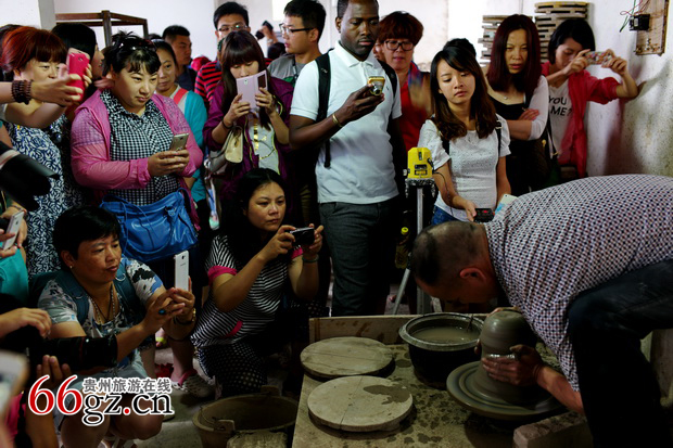 贵州旅游在线讯 7月15日,多彩贵州兴——“国酒香”第七届“听多彩之声 说魅力贵州”全国50家广播电台著名主持人来到平塘,接着又风尘仆仆来到牙舟镇古陶制作作坊,一进院子,“小伙伴”们就四散开来,有的在参观牙舟陶成品,有的在看正在烧窑的窑棚,更有一些“小伙伴”们则坐到作坊的桌前,拿起一块陶土有模有样地制作器陶艺来……