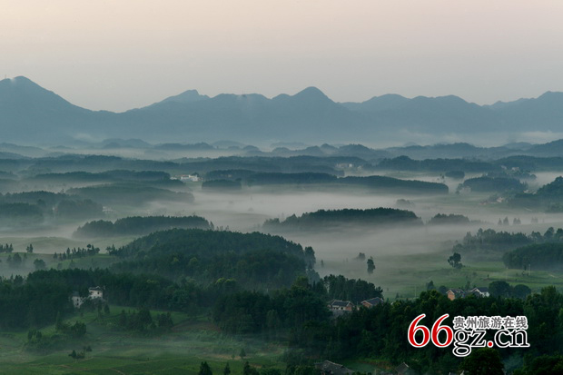 这是2014年7月30日凌晨5点36分在凤冈仙人岭拍摄到的“晨雾中的田坝茶海”。摄影:欧阳昌佩