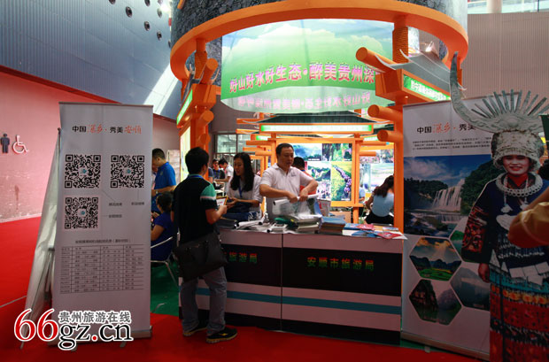 珠三角历来是我省最主要的客源地,随着泛珠三角区域旅游合作的不断加深,今年底贵广高铁即将开通,明年贵广高速全线贯通,珠三角及港澳地区的游客进入贵州将会越来越便捷。此次旅博会我省由杨俊巡视员带队,贵阳、遵义、安顺、铜仁、黔东南、六盘水、黔南等市州旅游部门及企业37家单位近80人代表团参展。贵州展台以9条多彩贵州“快进慢游”精品旅游线路为契点,通过9组灯箱图片集中展示了各地丰富的旅游产品。主展台以“跟着高铁游贵州”为标题,配上贵广高铁地图、2-7小时旅游经济圈图、贵州高速公路网图吸引公众不断前来咨询。旅博会期间贵州代表团共发放宣传资料3万余份,有效的向广州市民传递了贵广高铁开通信息,进一步宣传推介了我省旅游资源,巩固和提高了广州市民对“国家公园省·多彩贵州”旅游品牌形象的认知。