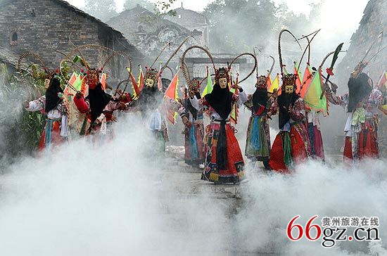云峰屯堡,是明朝朱元璋时期,从江南一带迁来的军士后代的聚居地,整个村寨按封闭防御的形态建造,独具风格和特色。生活在里面的居民至今仍保留明代的文化传统和生活习惯,身着蓝色长袍,逢节庆之日,这里还有精彩的地戏表演,安顺地戏,被评为国家级非物质文化遗产。