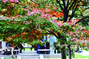 秋天,甲秀广场渐变的红枫叶。 刘辉 摄