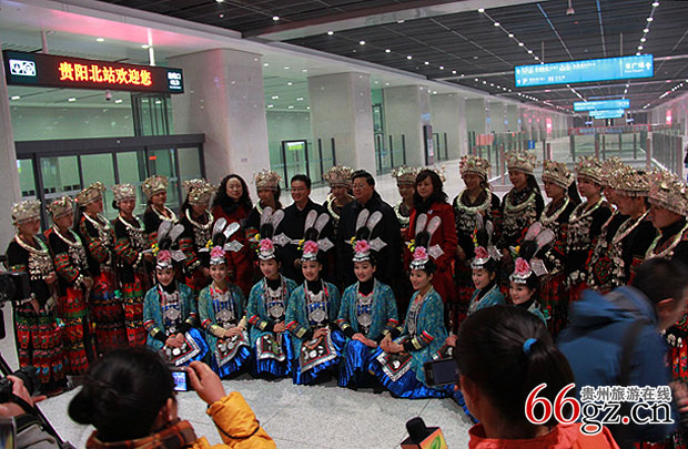 (演员现场演唱侗族大歌欢迎首发团游客)