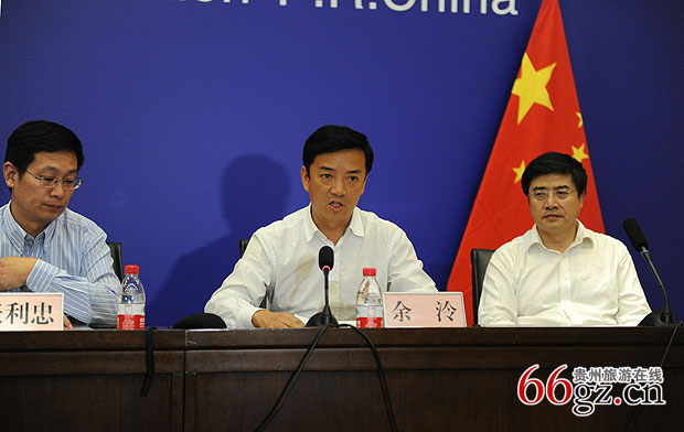 贵州省旅游局副局长余泠介绍大会筹备情况及配套活动 摄影:邢光明