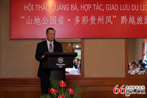 贵州省旅游产业发展委员会主任李三旗、越南国家旅游局市场开发部司长丁玉德、河内旅游协会副主席郑美亿出席会议并致辞。越南(河内)国旅股份公司首席执行官黎武装、越南鸿基旅游服务股份公司总经理杜春玩出席会议并发言。河内市旅游局副局长阮重和、乔越,河内市旅游协会秘书长武正东,贵州旅游协会会长傅迎春、贵州省黔西南州副州长黄曼出席会议。
