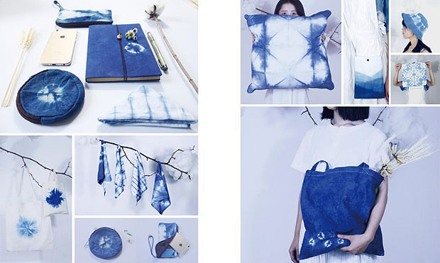 设计理念:蓝染是贵州少数民族传统染布技艺。植物发酵制作的染料,不仅环保无污染,还对人体有一定的保健作用。作品灵感来自于蓝天白云、星辰大海的乌托邦式联想,把自然带给我们的美好和恩惠融入日常是设计的根本。在物件里传递自然之情感,手作之温度,也传达着设计者的初心和理念,让消费者感知到自己成为崇尚自然环保,延续民族手艺做出贡献的一份子。